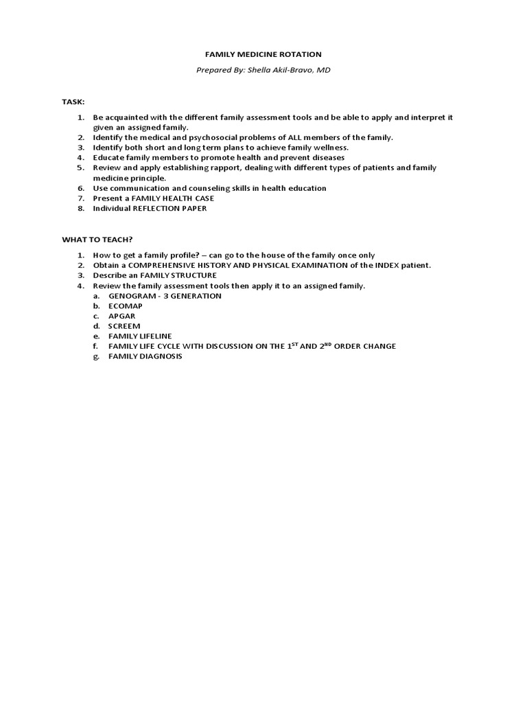 Family Medicine Rotation Hand Out PDF Family Hypertension