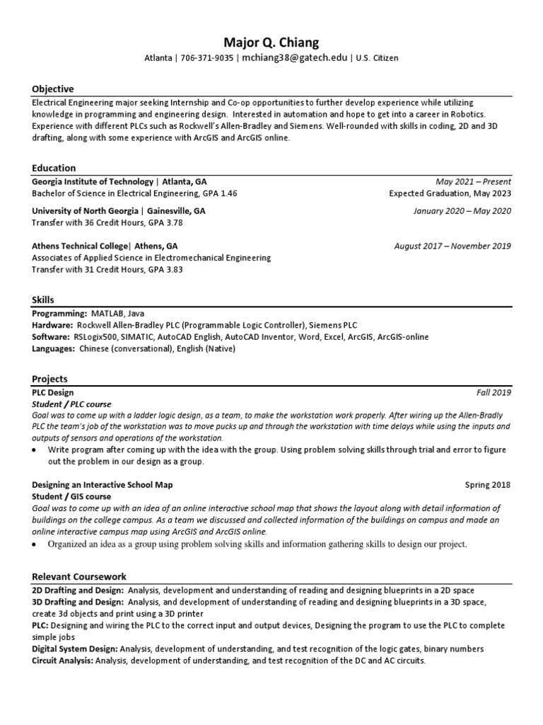 Gatech Resume PDF Programmable Logic Controller Computing