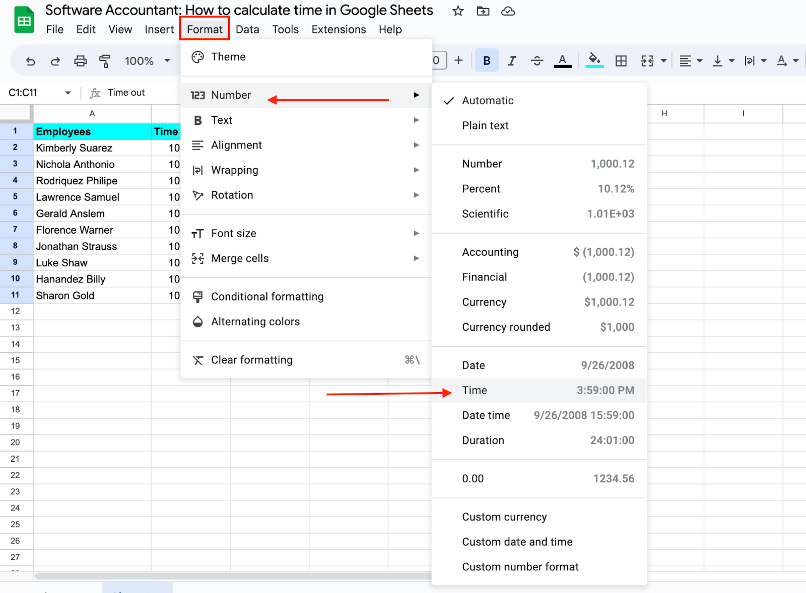 Calculate Time in Google Sheets (Time Difference, Hours Worked, Add)