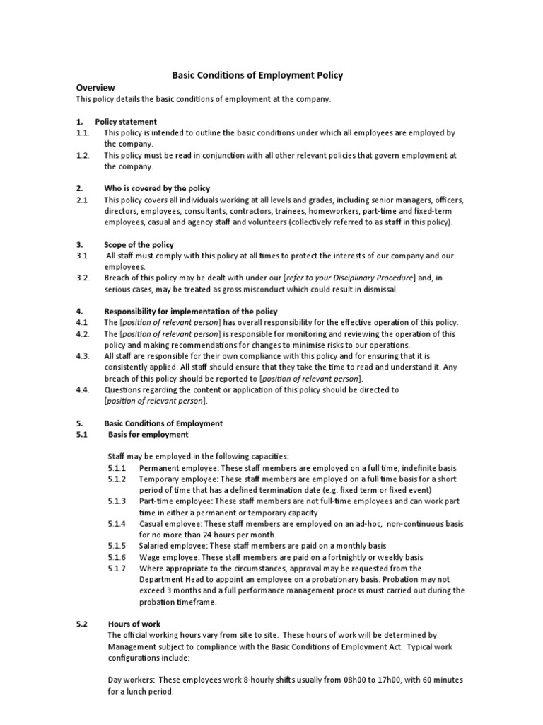 Basic Conditions of Employment Policy Template PDF
