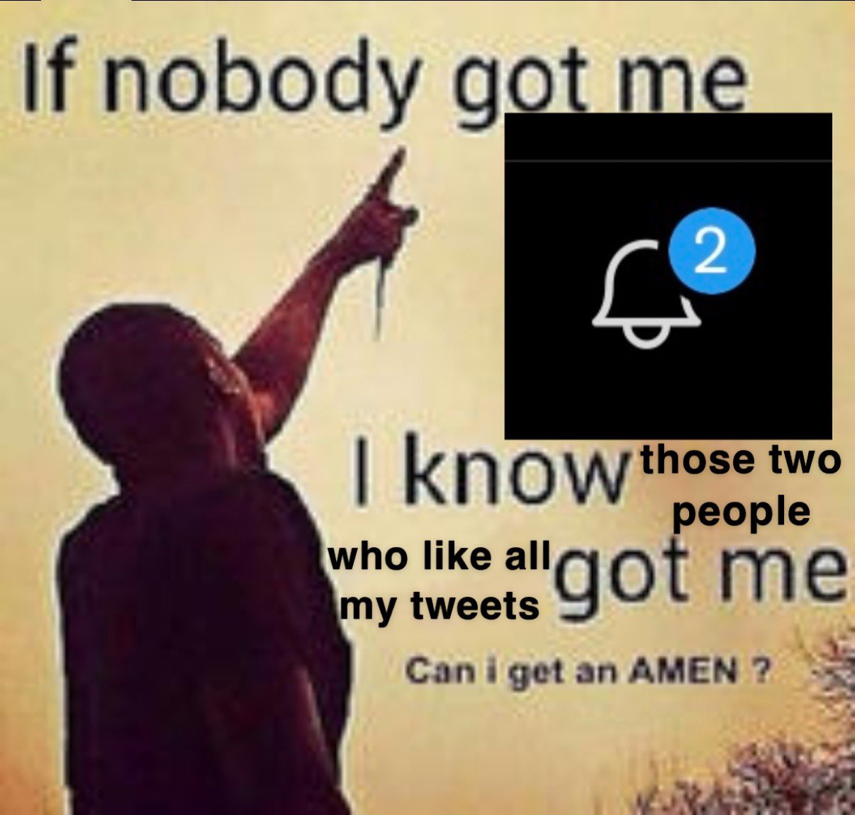 If Nobody Got Me, I Know Those Two People Who Like All My Tweets Got Me