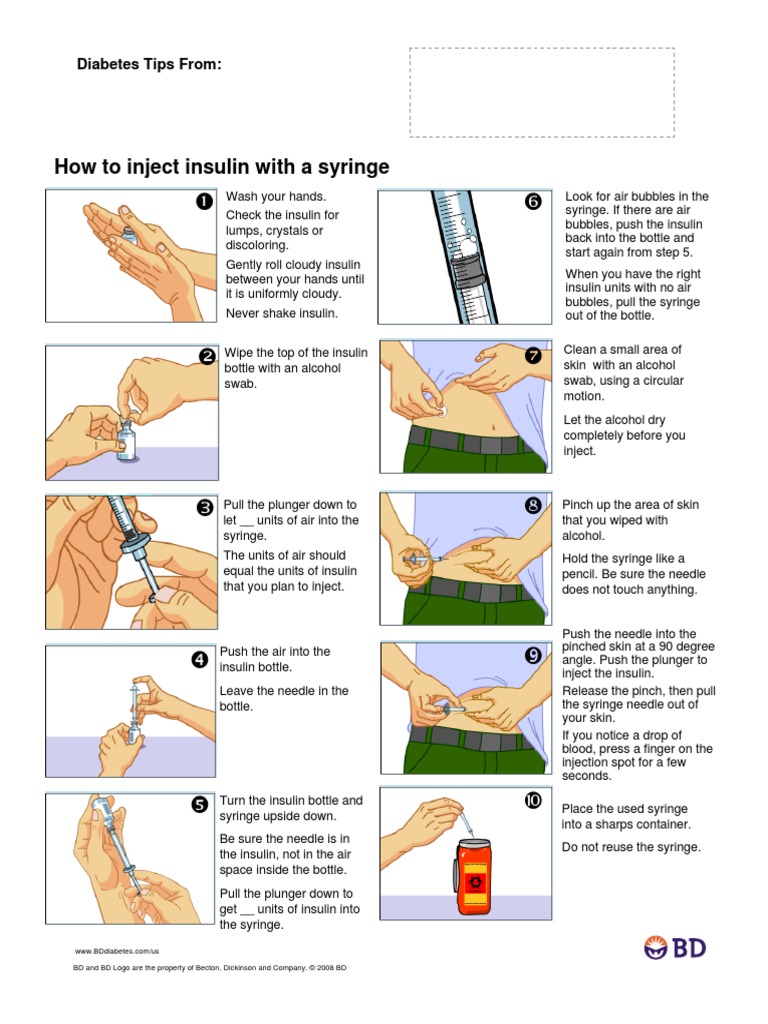 Proper injection technique can help you reach your treatment goals3* people with diabetes who received training on how to inject correctly,. Write down the date and time next to the sit (5.1 cm) from the belly button. Injection for addressograph plate yourself insulin. Insulin injection areas there are several areas of the body where insulin may be injected: