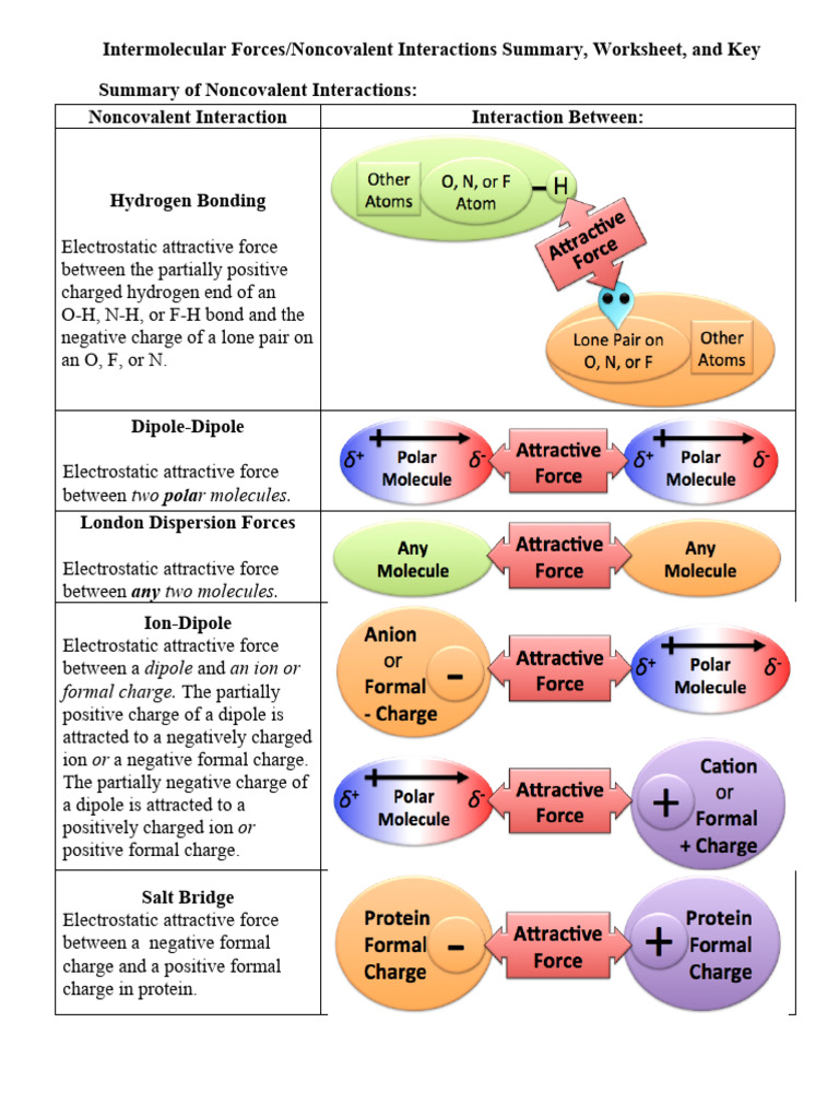 Intermolecular Forces Summary, Worksheet, And Key Worksheet