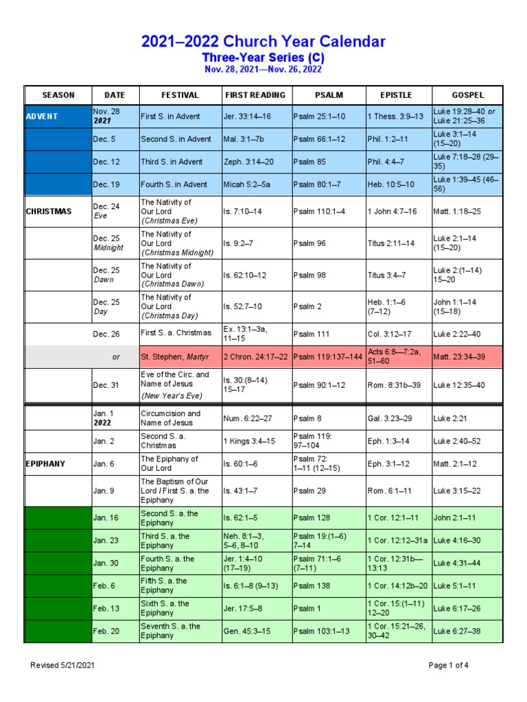 LCMS 2021 2022 Church Year Calendar One Year Series PDF Christian