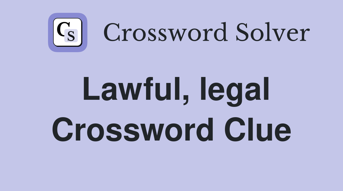 Lawful, legal Crossword Clue Answers Crossword Solver