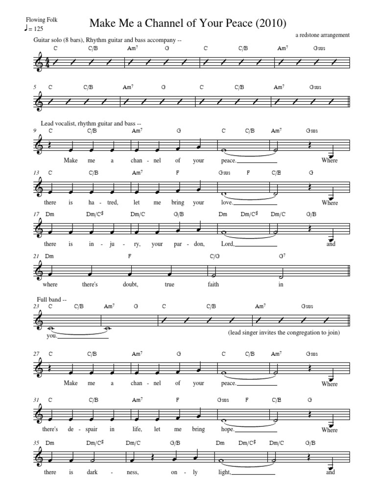 Browse our 7 arrangements of make me a channel of your peace. sheet music is available for piano, voice, c instrument and 5 others with.