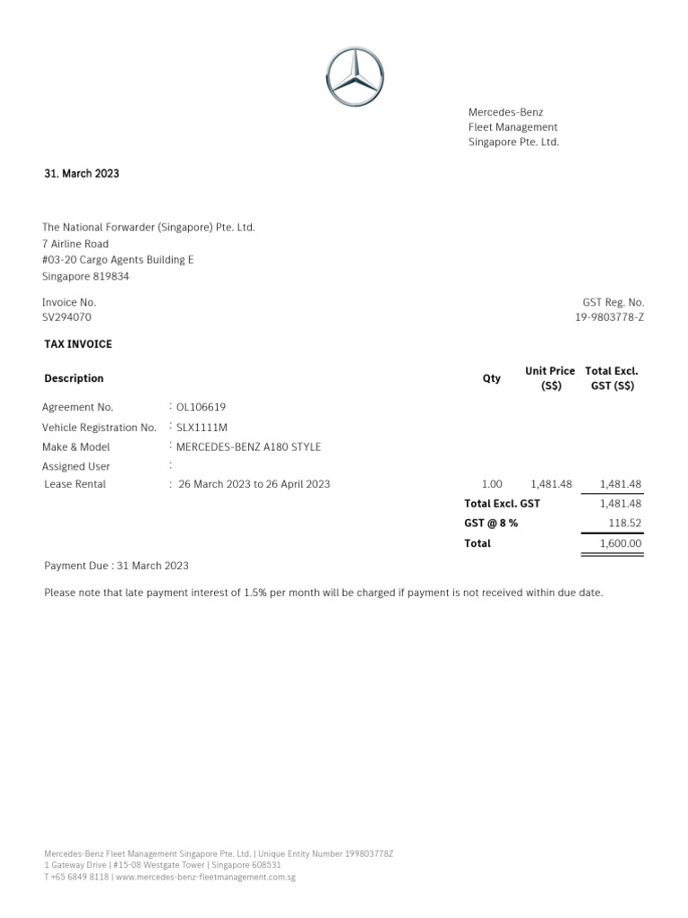 Mercedes Benz Invoice Template