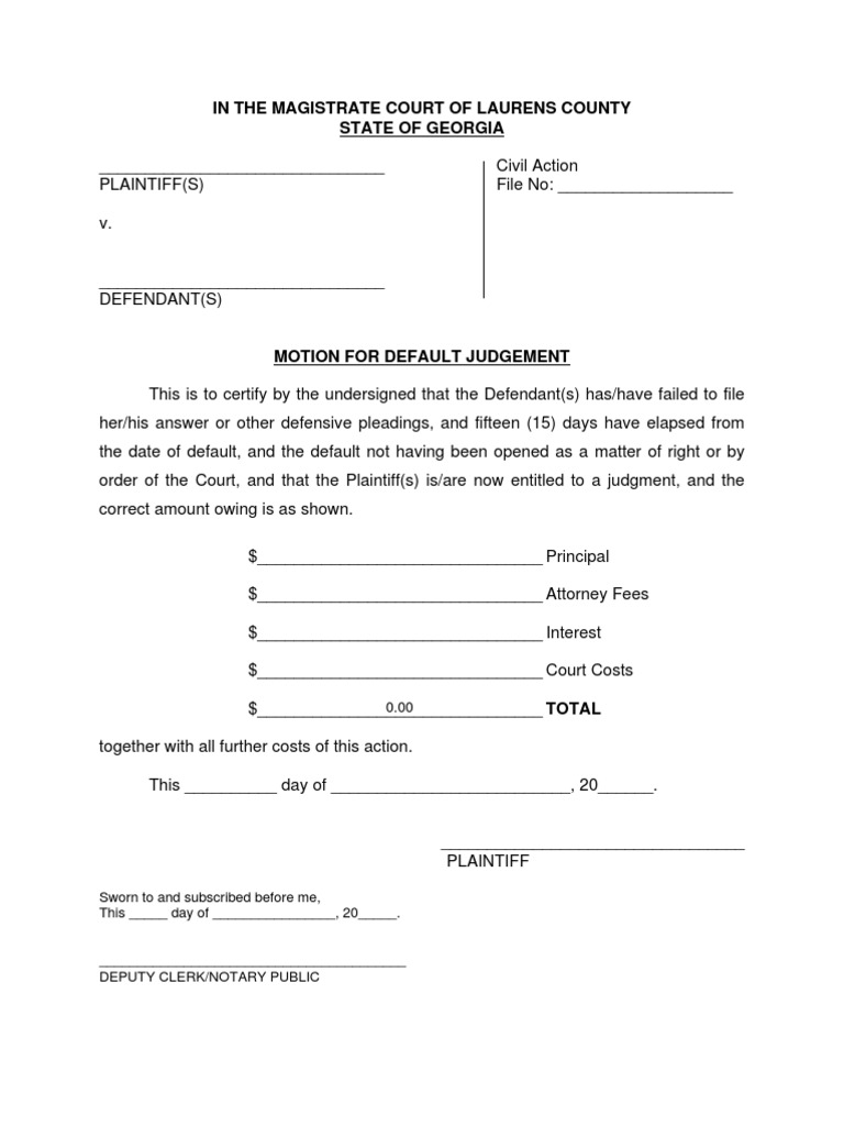 Motion For Default Judgment Template