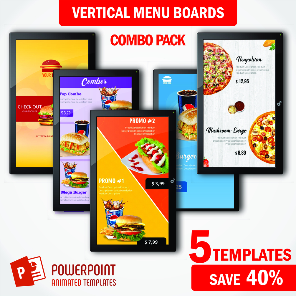 Combo Pack VERTICAL 5 Digital Food Menu PowerPoint Animated Templates