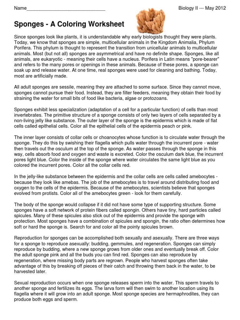 You can find here hard and detailed. Choose a coloring page that best fits your aspiration. Worksheets are porifera sponge work biology. Showing 8 worksheets for sponge porifera.