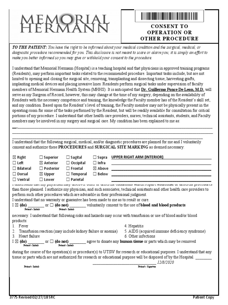 UT Southwestern Surgical Consent Form Template PDF Surgery Blood