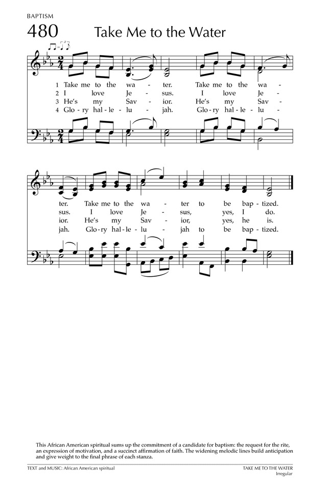 Take Me To The Water sheet music for voice and piano (PDF)