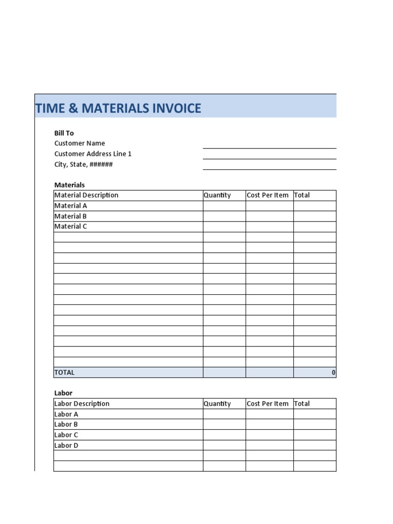 Time And Materials Invoice Template - General contractor time and materials invoice template.